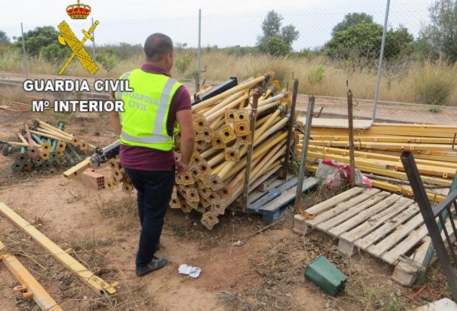 La actuación de la Guardia Civil se inició el día 25 de mayo cuando agentes que se encontraban realizando servicio de prevención de delincuencia reciben un aviso del Cuartel de la Guardia Civil de Burriana donde una persona informaba que autores desconocidos estaban sustrayendo material de obra en una finca en Cami Virrangues, situada en el término municipal de Burriana.