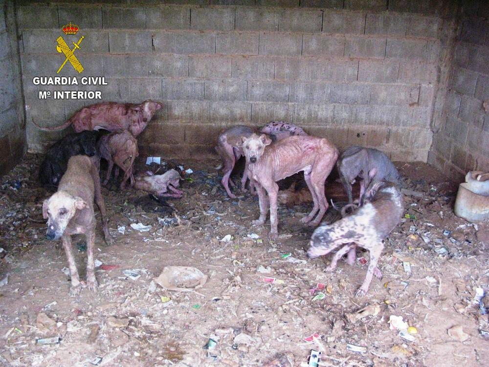 Por dicho motivo agentes pertenecientes Equipo de Protección a la Naturaleza (SEPRONA) de Castellón se desplazaron al lugar, comprobando que en el interior de una caseta de la mencionada parcela se albergaban una treintena de perros, la mayoría cruce de podencos, adultos y cachorros, en lamentables condiciones higiénico-sanitarias. Los canes vivían entre heces, huesos y restos de carne en estado de putrefacción. Asimismo presentaban graves problemas en la piel, con sarna y heridas sangrantes por todo el cuerpo, dos de ellos no podían mantenerse en pie.
