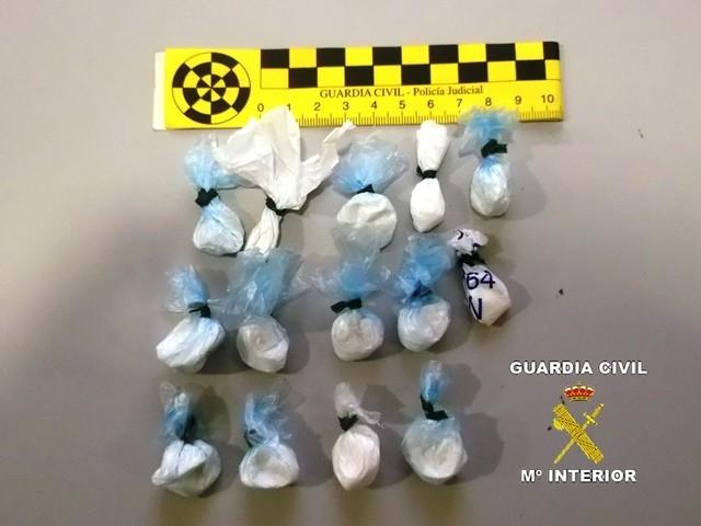 Tras detener el vehículo, los agentes realizaron un registro del mismo en el cual localizaron dos envoltorios, al parecer de una sustancia blanca que parecía ser cocaína. Al continuar con el registro se le encontró al conductor del vehículo una bolsa de plástico que contenía doce envoltorios de un polvo blanco similar al de la cocaína, así como una cartera conteniendo 135 euros en moneda fraccionada, siendo el peso total de la droga intervenida de más de 13,5 gramos. Por este motivo se procedió a la detención de S.C.B., de 42 años de edad; de nacionalidad española, como presunto autor de un delito contra la salud pública. Tanto el detenido, como la droga intervenida y las diligencias instruidas han sido puestos a disposición del Juzgado de Instrucción número 2 de Nules.
