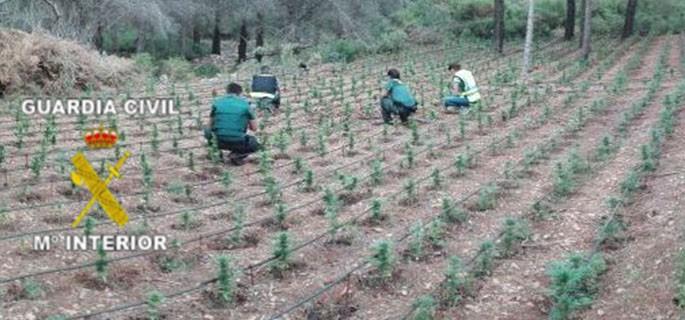 Por dicho motivo efectivos del Equipo contra robos en el campo (ROCA) de Castellón inició una investigación que dio como resultado la aprehensión de 1.800 plantas de marihuana de unos 50 cm de altura, repartidos en cinco huertos próximos a la finca donde se sustrajo el agua.
