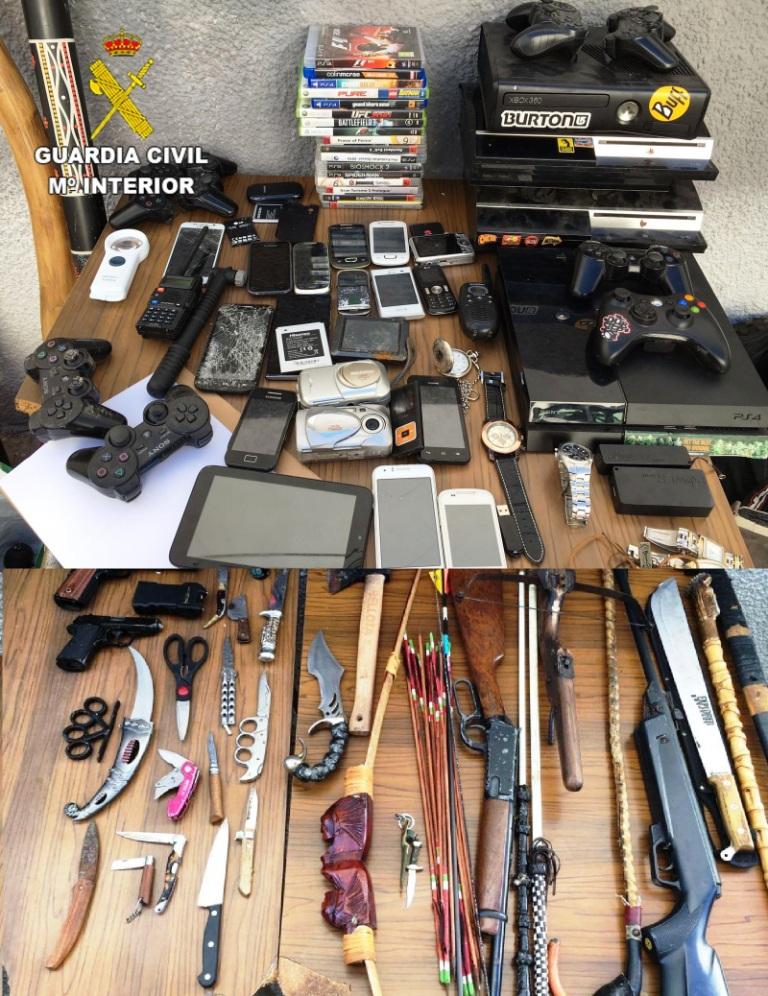 Gracias a las pesquisas policiales, se descubrió que los objetos hallados en este domicilio provenían de 6 hurtos cometidos en el interior de vehículos y viviendas de la Vall de Uxó, 3 robos con fuerza en un almacén y una vivienda de la misma localidad, así como un robo en un trastero de Faura (Valencia).