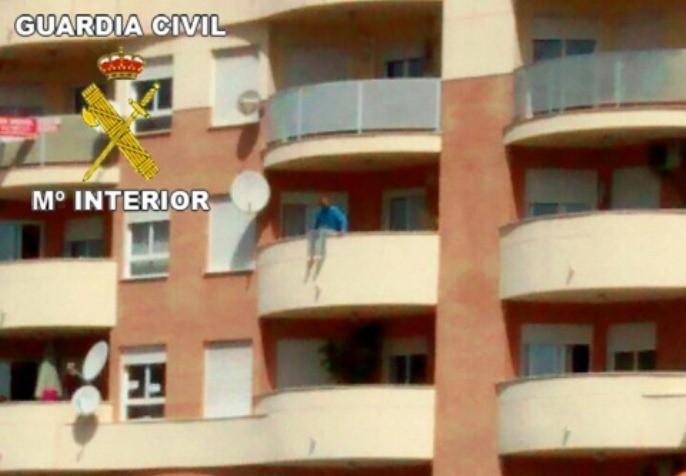 Rápidamente los guardias civiles, en unión de la Policía Local, bomberos y servicios sanitarios, se desplazaron a la zona observando que en la repisa de un balcón de un tercer piso, se encontraba un hombre que amenazaba con tirarse al vacío, así como que ya había arrojado las zapatillas que portaba al suelo. Pasado un tiempo prudencial una pareja de guardias civiles tras ganarse la confianza del mismo pudieron acceder a la vivienda, y una vez en su interior pudieron rescatarlo agarrando por la cintura.