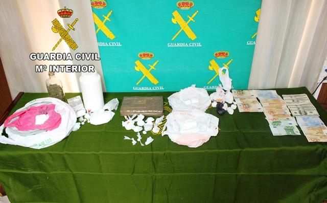 en 100.000 euros aproximadamente y 22 gramos de marihuana, dinero en efectivo con un importe de 11.300 euros y 3.700 dólares y 4 vehículos, así como balanzas de precisión, utensilios para cortar la droga, material informático y telefonía móvil. Con esta actuación la Guardia Civil ha desarticulado un importante punto de distribución y venta de cocaína en la zona sur de Castellón.