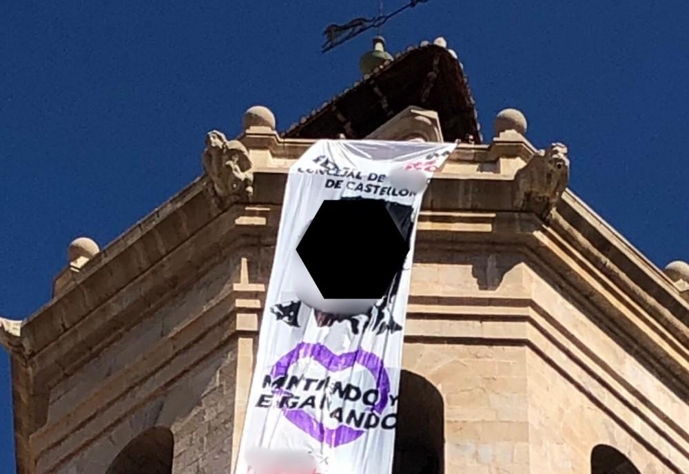 Hace unos días también se produjo un ataque contra un miembro de la Corporación de Castellón, en esa ocasión, el grupo que firmaba su ataque, desplegó una pancarta desde el Fadrí, en la plaza Mayor.