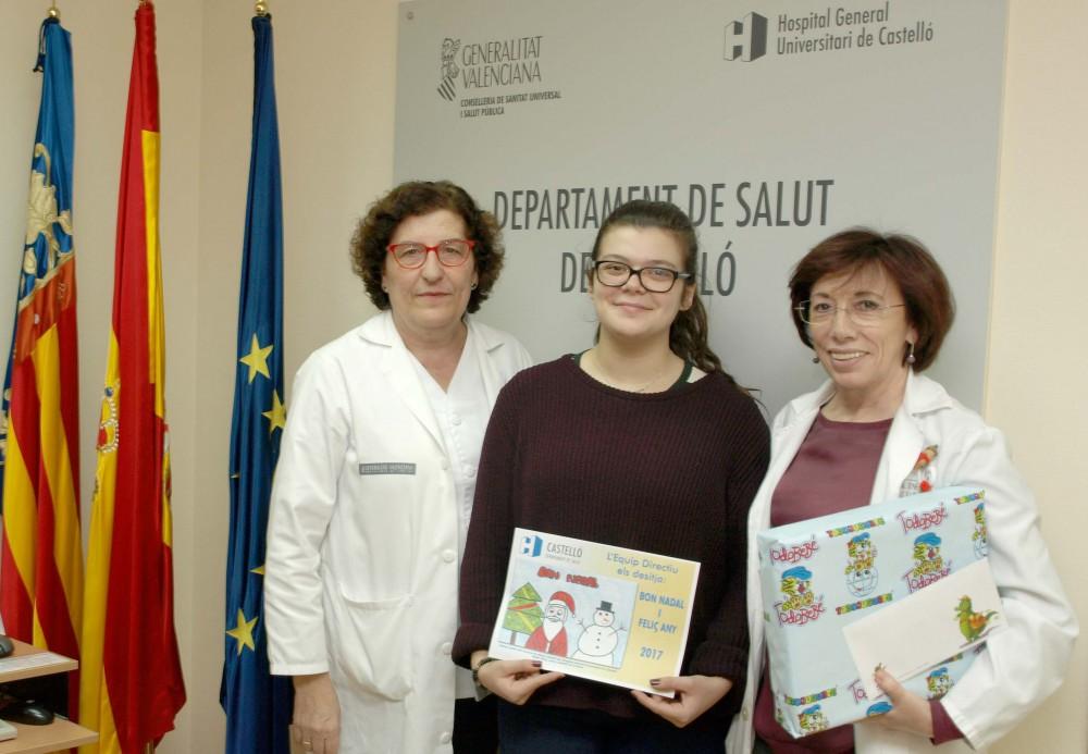 La ganadora ha sido Lucía, de 15 años, que ha recibido un regalo por la postal que pintó para el concurso, mientras estaba ingresada en el centro sanitario. Como es tradición ha sido la tarjeta de felicitación del Departament de Salut de Castelló para estas fiestas de 2016.