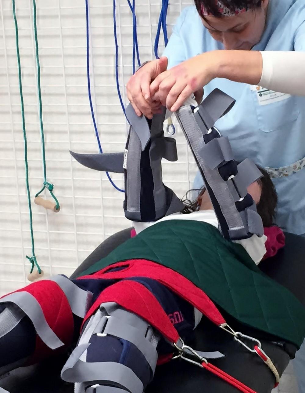 Sesión tras sesión, Luhay podrá eliminar los patrones patológicos de su parálisis y establecer unos nuevos patrones de postura y movimiento más normalizados. Pero siempre luchando contra la distonía que tanto dificulta cualquiera de sus tratamientos.