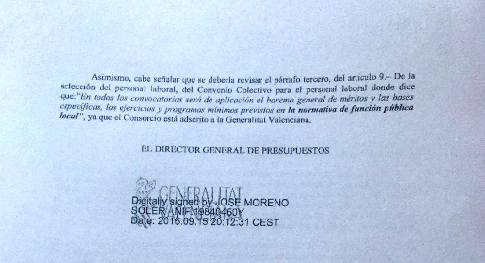 Según siempre las mismas fuentes, el informe emitido por la Conselleria de Hacienda, estaba fechado en septiembre 2016, pero no fue comunicado a los sindicatos hasta el pasado mes de noviembre.