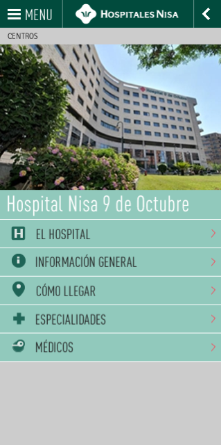 En la versión para dispositivos móviles se ofrecen los principales contenidos y las mismas utilidades que en la web www.hospitales.nisa.es pero sin replicar sus contenidos de forma exacta sinó adaptados a los dispositivos móviles que disponen de pantallas más pequeñas que un ordenador.