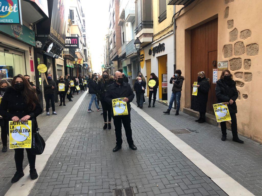 Quasi un centenar de treballadors del sector s'ha congregat en la Plaça Major reivindicant que l'hostaleria són espais segurs i demanant mesures per a salvar el sector davant el tancament total decretat pel Consell. Després ha tingut lloc la reunió de representants de l'oci i la restauració amb equip de govern i partits per a consensuar mesures de suport