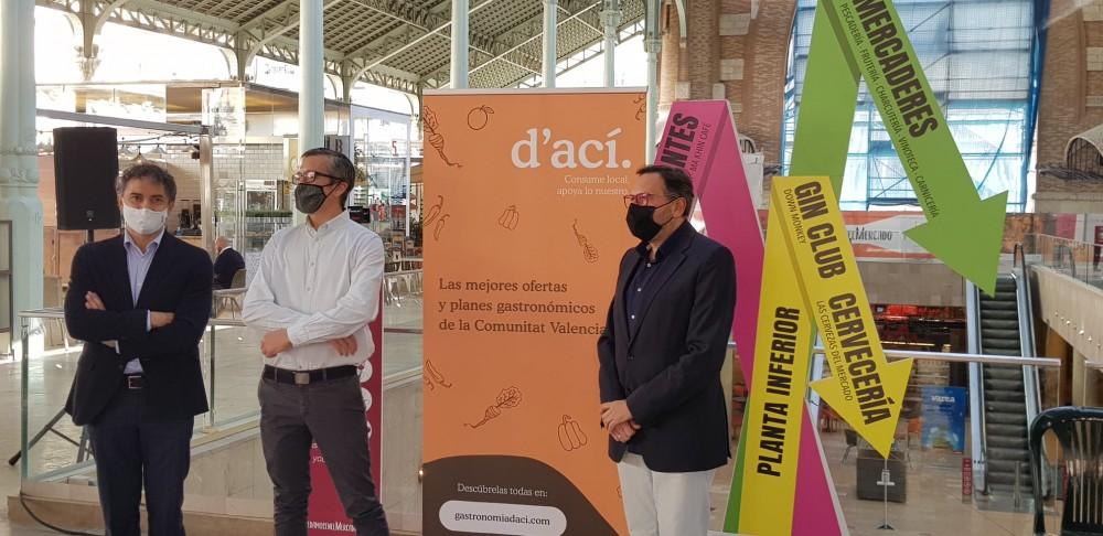 Francesc Colomer ha presentado la campaña junto con el presidente de Conhostur y de la Federación de Hostelería de València, Manuel Espinar, y el presidente de la Asociación de comerciantes del Mercado de Colón, Steve Anderson.