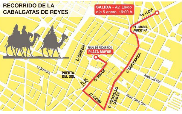 Desde la avenida de Lledó, el desfile llegará a la plaza María Agustina, para tomar la calle Gobernador, calle Asensi, plaza de La Paz, calle Mayor, Arcipreste Balaguer y plaza Mayor.