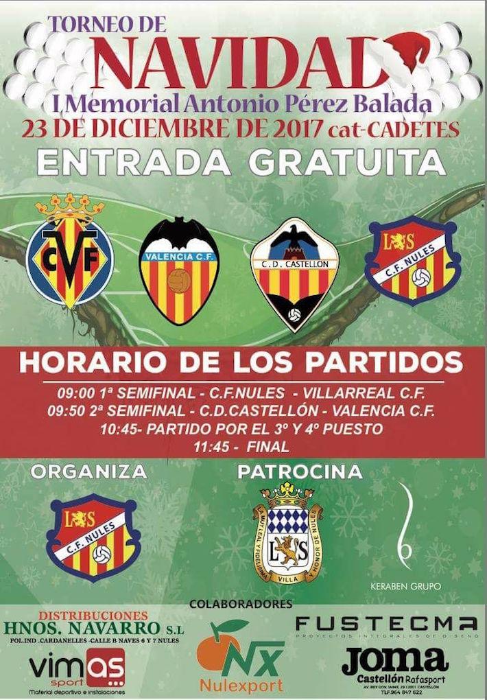 En relació al I Memorial Antonio Pérez Balada el coordinador de l’escola del C.F Nules, Sergio Lafuente, comenta que “fa molts anys que no organitzem un torneig de Nadal i amb aquest el que volem és fer-li un homenatge al futbolista més important de Nules com és Antonio Pérez Balada. L’objectiu del club és que aquest torneig tinga una continuïtat i en les pròximes edicions s’amplie a les altres categories”.