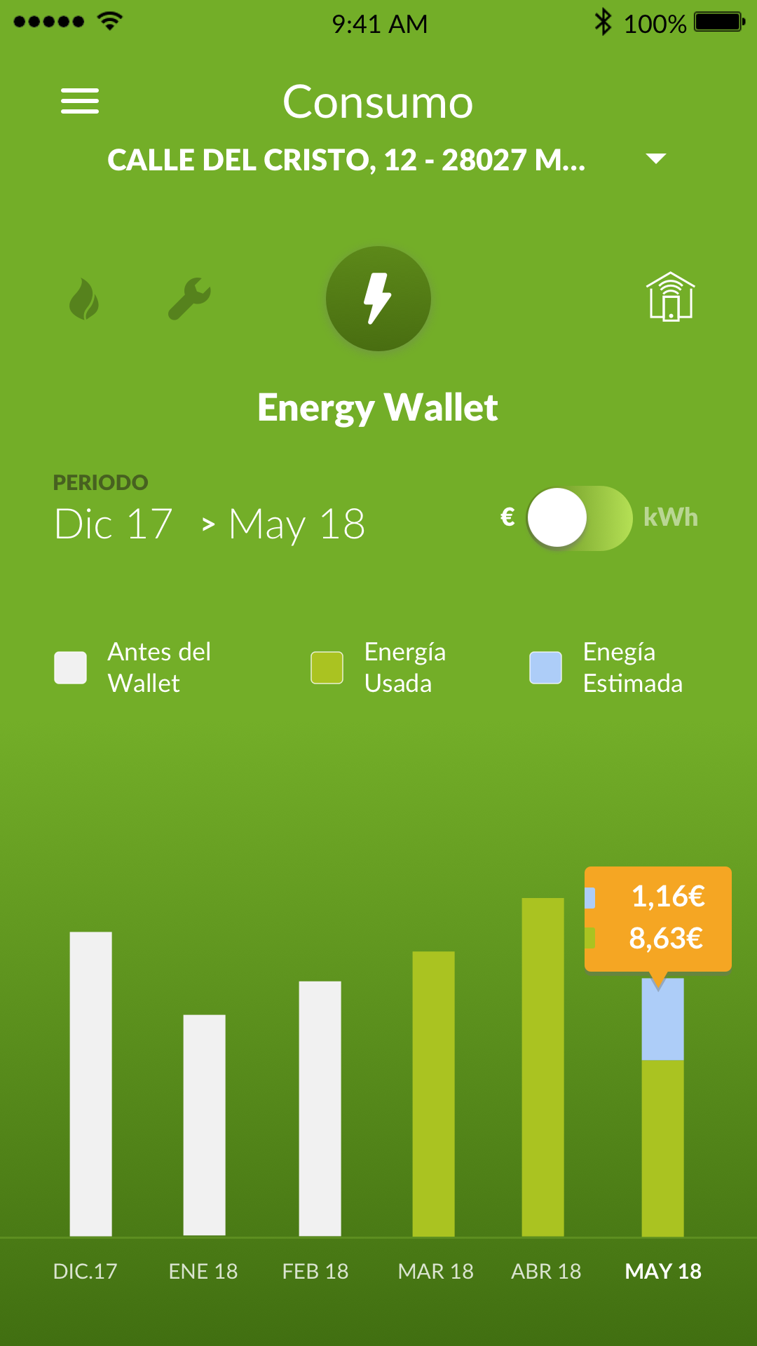 Al contratar uno de estos paquetes, el cliente puede incluir más suministros y de esta forma puede pagar el consumo de todas sus viviendas como si fueran una. Además, la electricidad que se comercializa en Energy Wallet cuenta con el certificado de garantía de origen 100% renovable, que asegura que esta energía proviene de fuentes de generación limpias.
