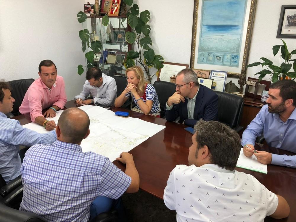 Al encuentro con el alcalde, Andrés Martínez, y el concejal del área de Servicios, Jorge Rovira, además de los representantes de la empresa, han asistido los técnicos municipales competentes en la materia, así como el representante de la agrupación de empresarios turísticos (Agretur), Francisco Ribera.