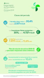 Sobre este escenario, el grupo ha anunciado una nueva edición de su programa Iberdrola Retribución Flexible, que contempla un incremento de la remuneración a cuenta de 2019 del 10,6%, hasta situarse en 0,167 euros brutos por acción que se abonarán el próximo 5 de febrero. A esta cantidad habrá que añadir, además, el importe complementario previsto para el mes de julio de 2020.