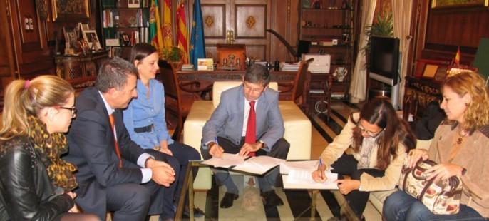 El Alcalde de Castellón, Alfonso Bataller, ha firmado hoy un convenio de colaboración entre el Ayuntamiento y el Instituto de Educación Secundaria ‘Caminàs’, para la realización de distintas intervenciones formativas en los comercios por parte del alumnado de ciclo formativo de grado medio de comercio y el ciclo formativo de grado superior de comercio y marketing.
