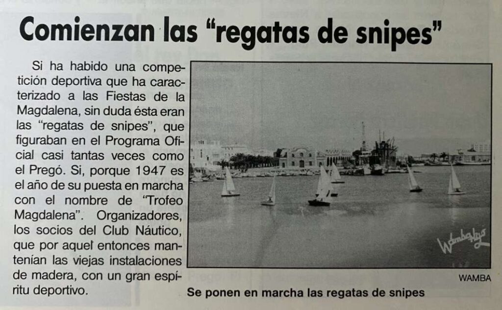 Durante muchos años la Regata Magdalena se celebraba el primer fin de semana de las fiestas, puntuable en el circuito autonómico, y con representación de otros clubes náuticos de otros puntos del territorio nacional. Los premios eran patrocinados por la Junta de Fiestas y los premios eran entregados por la reina infantil de las fiestas cuando se creó esta figura.