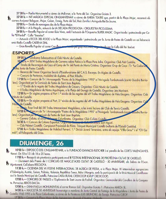 Fue el inicio de las Fiestas de la Magdalena, tal como se las conoce en estos momentos, que pasaron de 3 a 9 días de fiestas y que incorporaban las tradiciones, pero también los deportes más populares de la ciudad.