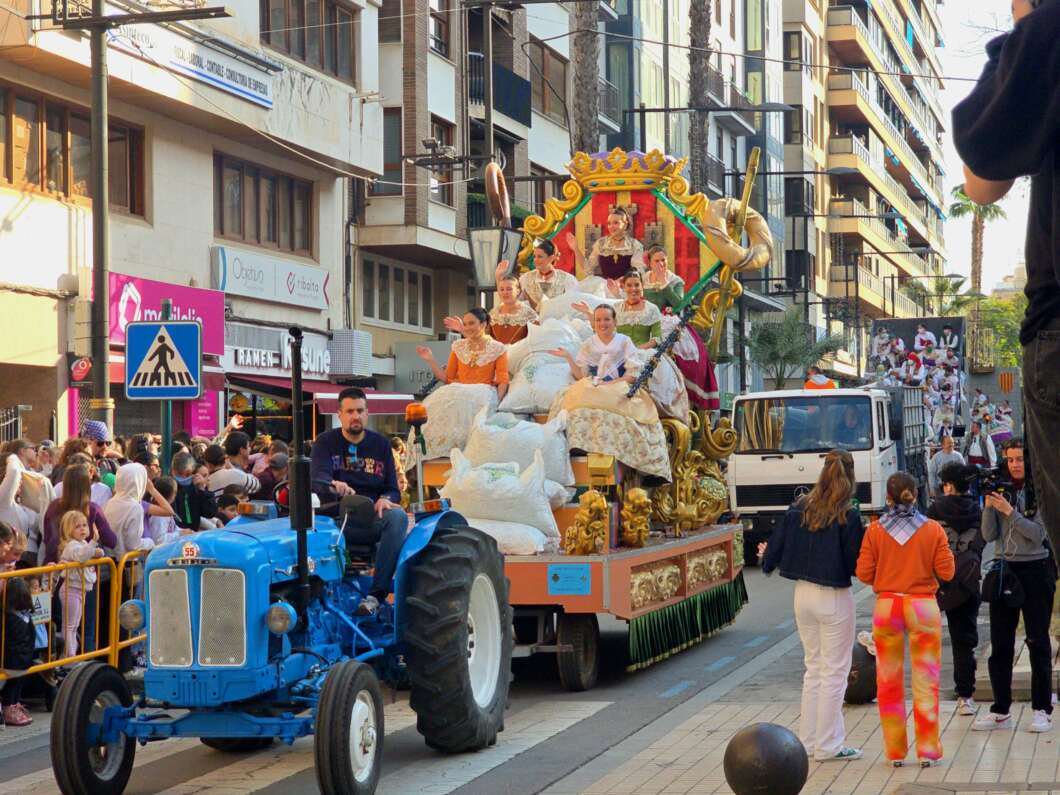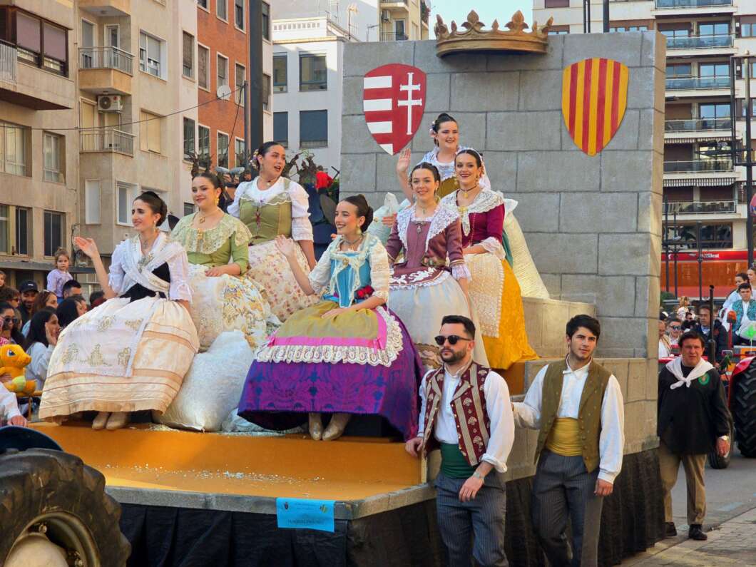En total 23 carrozas encabezadas por la de la Federación de Collas, las 19 gaiatas de la ciudad, las Reinas de las Fiestas, Paula Torres y Carla Ibáñez junto a sus Cortes de Honor así como Na Violant d'Hongria y sus Damas de Compañía han encarado la primera parte del desfile por la Avenida Rey Don Jaime, en el tramo comprendido entre la calle Zaragoza y la plaza Clavé. Una vuelta que no hace sino aumenta la ilusión de los más pequeños de la casa que saben lo que viene después.