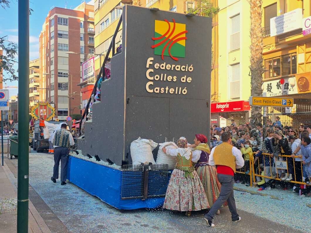 Y por fin la segunda vuelta, donde todo lo que antes era un orden programado desaparece en una lluvia miles y miles de papelitos de colores y las risas de los participantes. Por que en Castellón no suele nevar pero durante la Magdalena todo es posible.