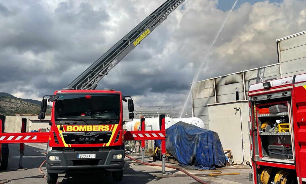 A las 13.30 horas los bomberos siguen trabajando en el control del incendio y se están protegiendo unos depósitos de gas próximos a la nave afectada.