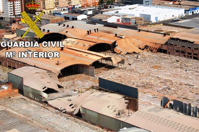 Posteriormente, se constató que los imputados ayudados con maquinaria y vehículos, estaban realizando sin ningún tipo de protección tareas coordinadas de corte, derribo, selección y recogida de metales pertenecientes a la estructura, llegando a derribar parcialmente los 23 edificios que componían la estructura de la empresa y dejando únicamente sobre el solar de la empresa el fibrocemento de cubierta.