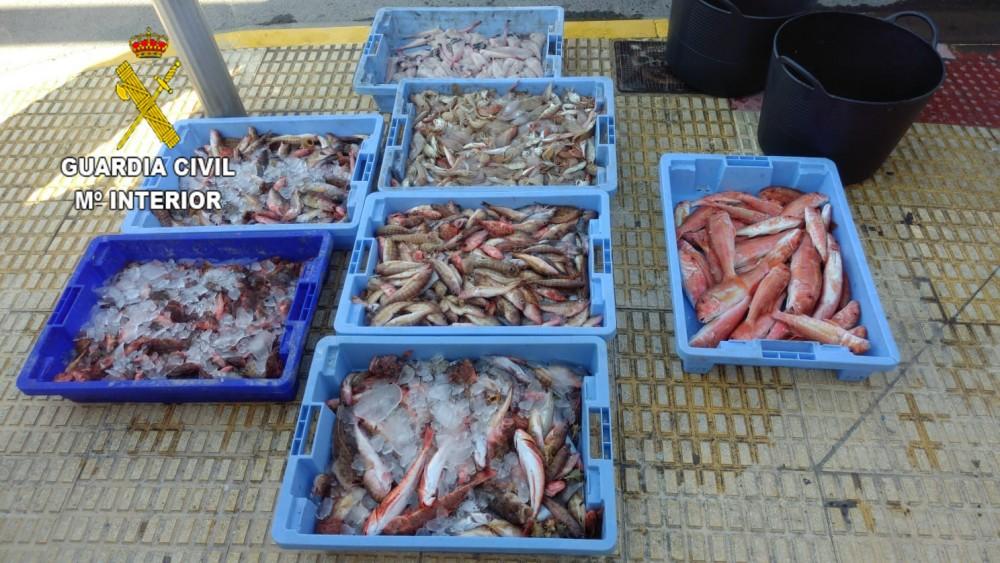 Por dicho motivo la Guardia Civil procedió a la identificación del ocupante del vehículo, hallando en el maletero un total de 7 cajas de pescado, con un peso total de 64 kilogramos, entre ellos 4 kilogramos de rape, 8 kilogramos de salmonete y 52 de morralla.