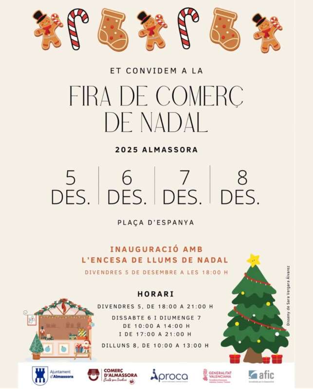 La Fira de Comerç de Nadal compta amb una dotzena d'expositors de diferents sectors i un complet programa d'activitats durant el cap de setmana. Tota la informació d'este certamen pot consultar-se en el següent enllaç: https://www.almassora.es/ca/articulos/fira-nadal-almassora