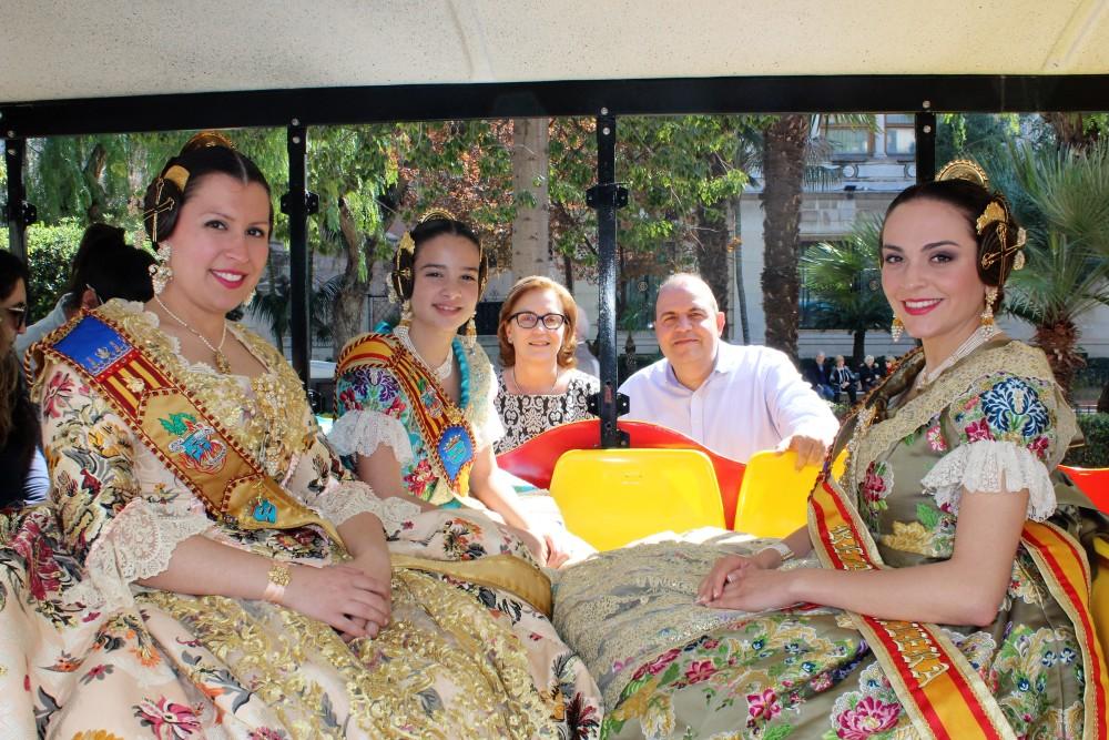 Les Reines Falleres de Borriana i la Presidenta de la Junta Local, Lluïsa Monferrer no han volgut perdre's avui la inauguració del 'Trenet Faller' que durant les properes tres jornades permetrà als veïns, veïnes i visitants de la ciutat, recórrer en poc més de vint minuts els 19 monuments plantats als carrers i places. Després d'un primer viatge en el qual els protagonistes han estat els usuaris de la Residència de la Tercera Edat i les membres del col·lectiu Acodis, la parada d'inici i final del 'Trenet' situada en la Plaça Major ha estat un formiguer de gent esperant el seu moment per poder completar el recorregut. Entre els “viatgers” s'ha pogut vore precisament a les Reines Falleres de Borriana, Elena Collado i Silvia Martínez, acompanyades per la regidora de Festes, Lluïsa Monferrer i l'alcaldessa de Borriana, Maria Josep Safont. Al costat d'elles, el president de la Federació de Falles, Salvador Doménech i, en el dia d'avui, les Bellees del Foc d'Alacant que han visitat Borriana.