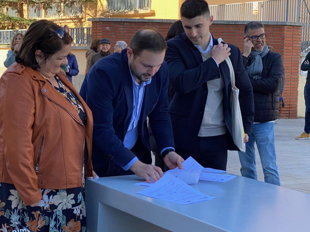 Llegados a la altura de la escultura de Tombatossals, los responsables municipales y los de la obra firmaban las actas de la entrega de la obra.
