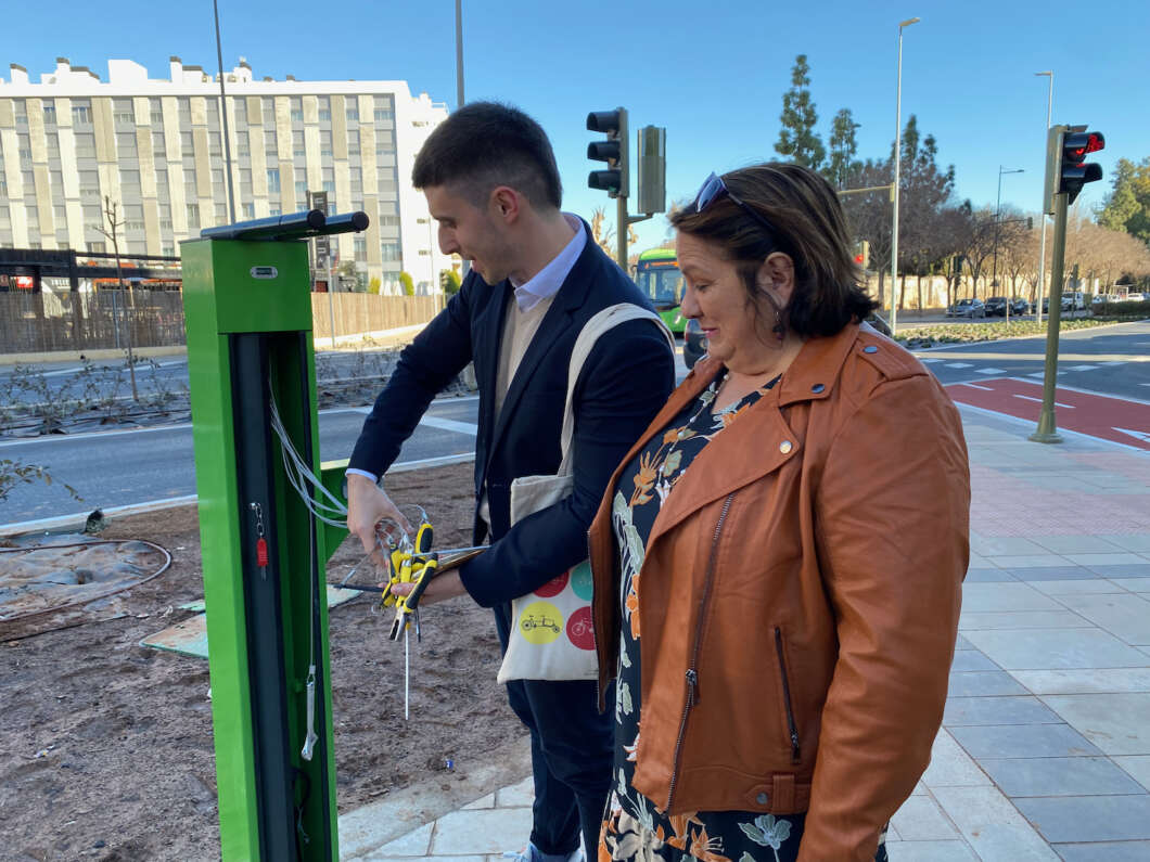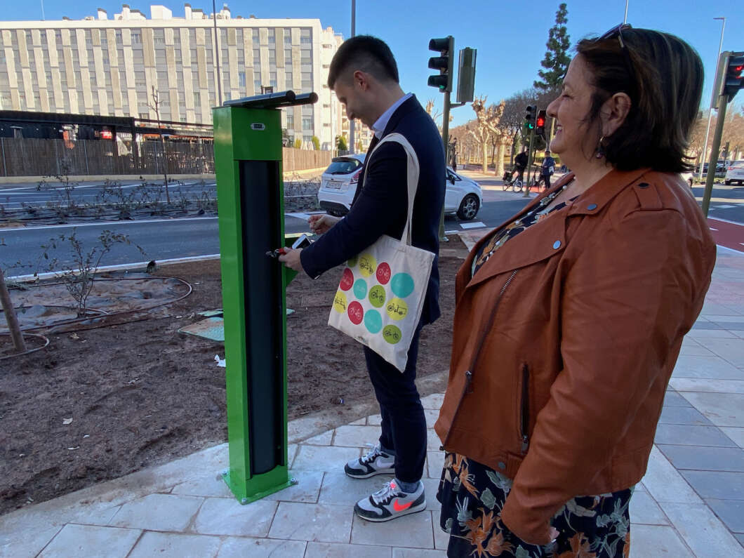 En su recorrido, mostraron al concejal una especie de caseta estrecha y vertical, cerrada. Se trata de un punto para el ‘arreglo de bicicletas’. Se abre con una moneda y dentro hay colgadas herramientas y un mecanismo para el inflado de las ruedas. “ya veremos cuánto durará”. Se preguntaban algunos de los visitantes.