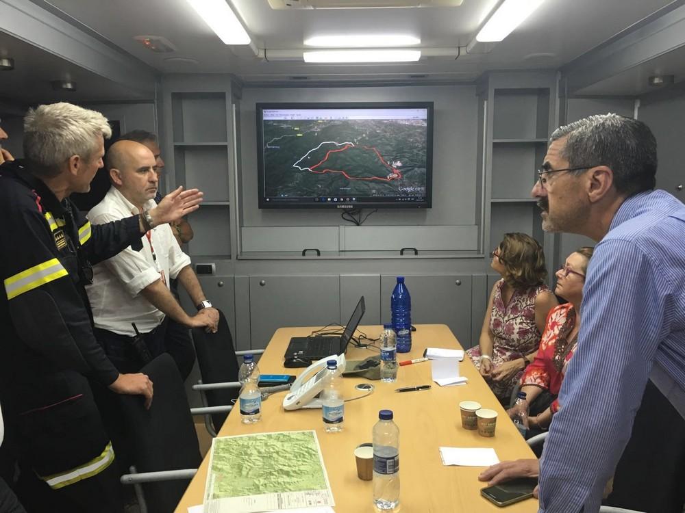 Por la tarde han estuvieron en el Puesto de Mando, el director general de la Agencia de Seguridad y Respuesta a las Emergencias, José María Ángel, y la consellera de Agricultura, Medio Ambiente, Cambio Climático y Desarrollo Rural, Elena Cebrián, para conocer de primera mano la situación del siniestro.