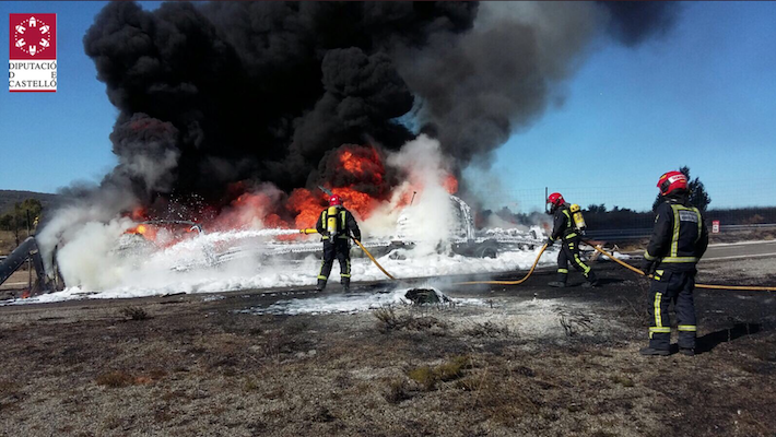 El Consorcio Provincial de Bomberos de Castellón se ha movilizado a un incendio orginado en un camión en el área servicio A23 de Barracas que transportaba 16.000 kg de poliuterano. En un principio se han personado dos dotaciones del parque Alto Palancia pero posteriormente se han unido otras dos de la Diputación de Teruel, un hidroavión y también un coordinador Forestal y dos unidades de Bombers Forestals de la Generalitat debido a que el fuego ha llegado a una zona vegetación colindante al vehículo, cuyo remolque y carga han quedado totalmente afectados.