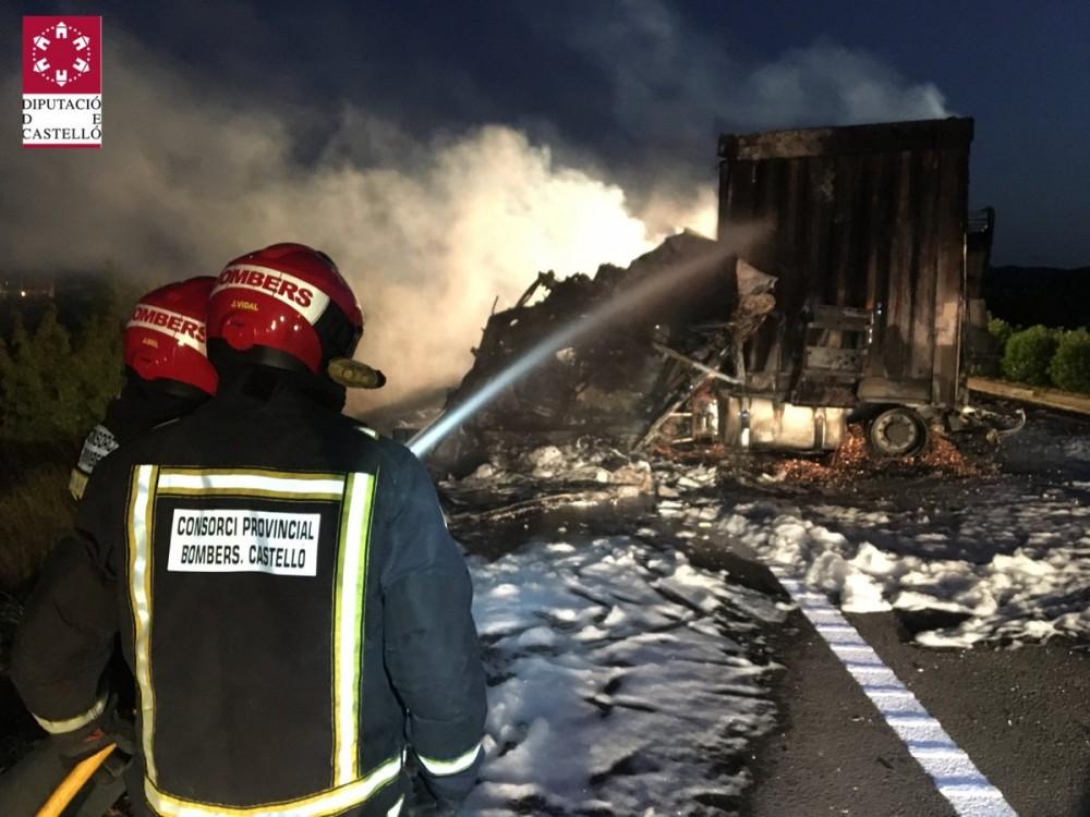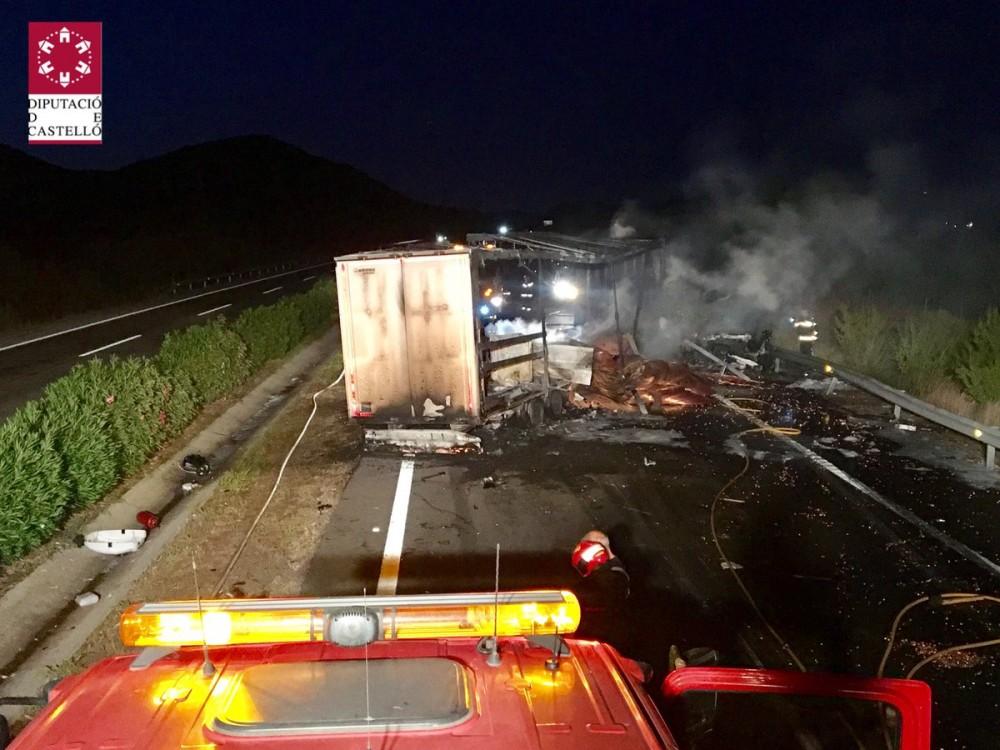 El Servicio de Información del Consorcio Provincial de Bomberos de Castellón ha informado sobre las 21 horas que se han movilizado dotaciones de los Parques de la Plana Alta y Baix Maestrat a un accidente, con dos camiones implicados, en la AP7 en el término municipal de Torreblanca y en el que no ha habido heridos.