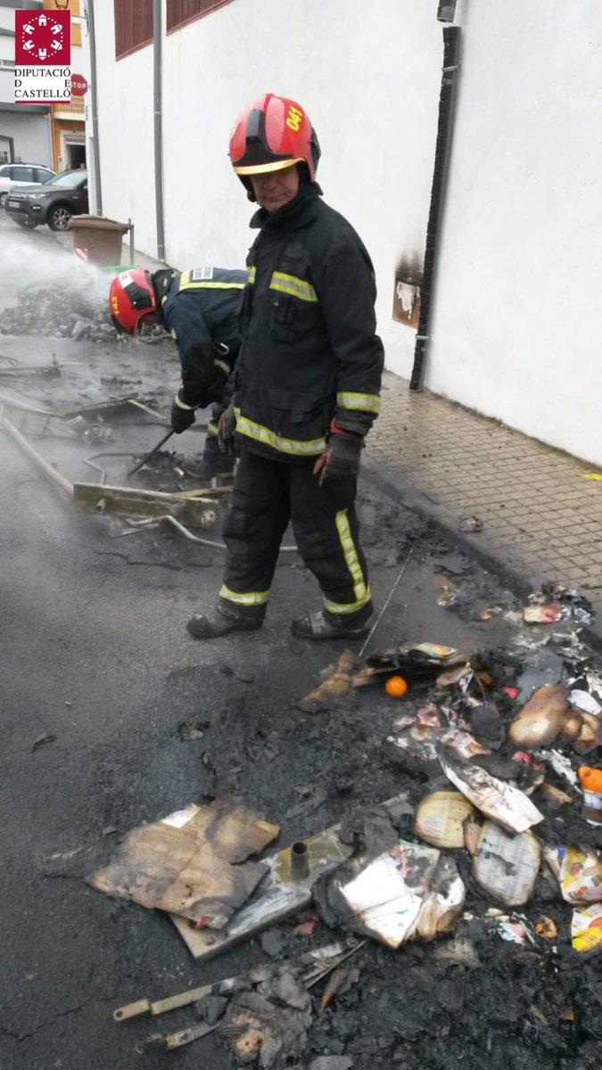 Una dotación de Bomberos del parque de la Plana Baixa ha participado hoy en la extinción de un incendio de cuatro contenedores de residuos que se ha producido en Xilxes.