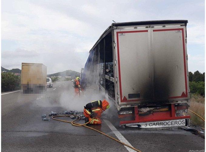 Por otra parte, los Bomberos de Sagunto han tenido que intervenir esta tarde para apagar el fuego de un camión, cuando circulaba por el término municipal de Almenara. El camión transportaba 25 toneladas de agua.