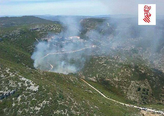 Concretamente, las llamas, que afectaban a la vegetación de la zona, tenía lugar en las inmediaciones de la Ermita de Sant Antoni.