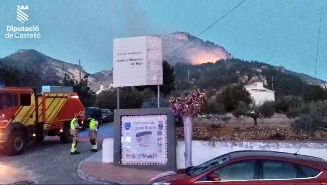 Fuentes del Consorcio de Bomberos han informado a las 14 horas de este viernes "continuamos trabajando en el incendio forestal declarado en Toga esta madrugada, donde estamos actuando con un dispositivo de 90 efectivos entre medios del Consorcio de Bomberos de Castellón y de Generalitat Valenciana, junto a seis medios aéreos de GVA. Por el momento el incendio no está afectando al parque natural de la Sierra de Espadán".