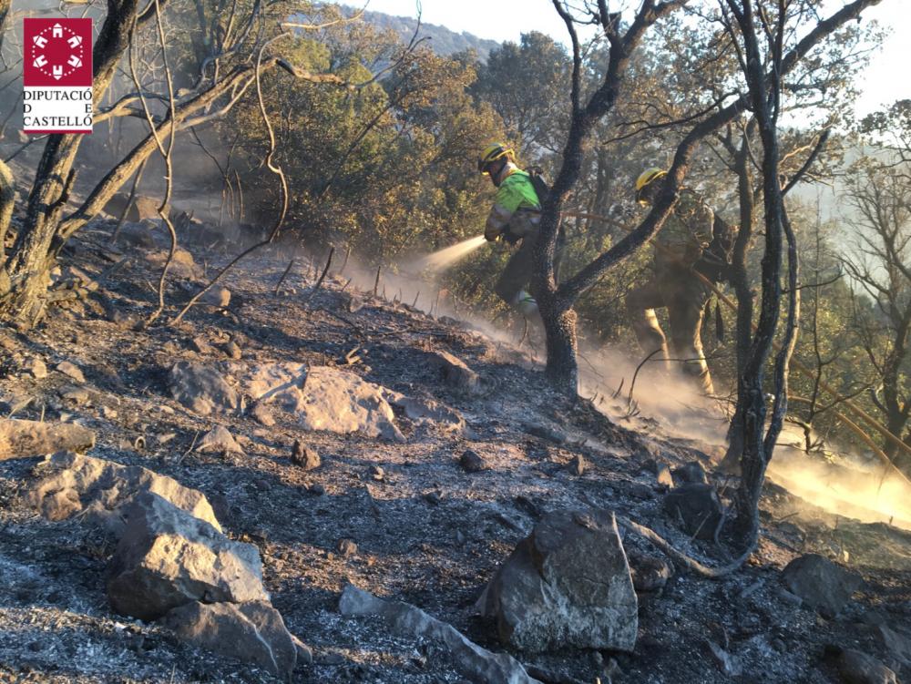Después de diversos conatos y pequeños incendios se ha producido un incendio forestal en la Serra d’en Galcerán, en el CV-15 km 22. Se han movilizado tres dotaciones de Bomberos del CPBC, cuatro de Bombers Forestals, más cuatro autobombas. En un primer momento los medios, no han podido despegar debido al viento.