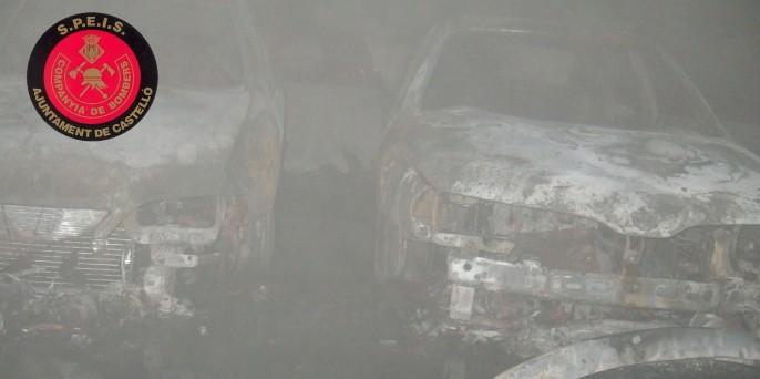 El fuego calcinó por completo dos turismos, un Renault Laguna y un Citroën Xsara, y un tercer vehículo, un Renault Megane, quedó muy dañado por el calor desprendido por las llamas. Por otro lado, todo el garaje ha quedado muy afectado por el intenso humo que se produjo durante el incendio.