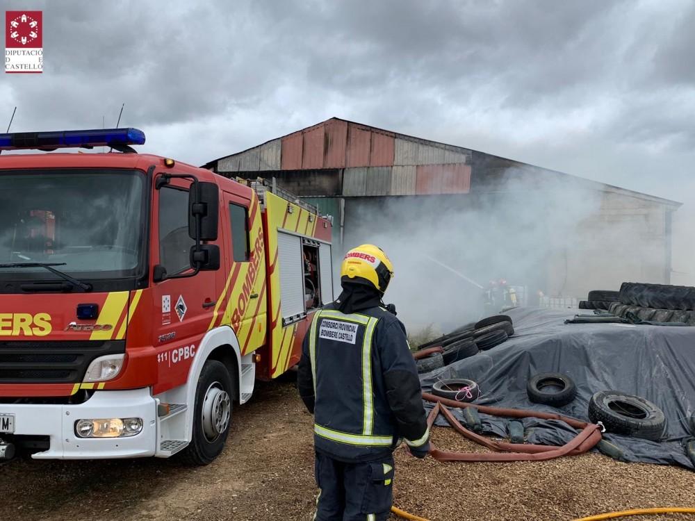 Los bomberos intentan sofocar un incendio que se ha localizado en Morella y que afecta a una nave agrícola que almacena paja y alimento para ganado, tal y como han informado fuentes del Consorcio Provincial (CPBC).