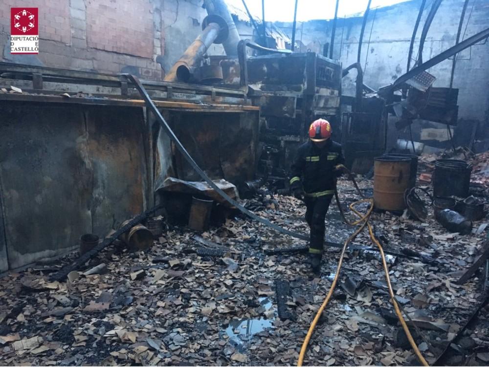 Debido al fuego parte de la estructura de la nave ha cedido. La rápida actuación de los bomberos y la cercanía del foco al parque de La Plana Baixa han facilitado las tareas de extinción. Por ahora se desconocen las causas del fuego y son diferentes hipótesis las que se barajan.