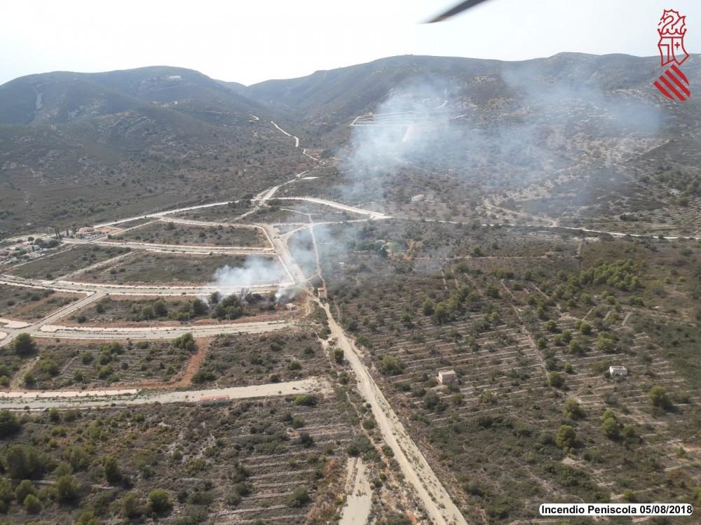 Sobre las 16.30 horas el CPBC ha alertado de un incendio en una zona de vegetación de Peñíscola. Han sido movilizados una dotación de bomberos del Consorcio Provincial, dos unidades de bomberos forestales de la Generalitat, un helicóptero con una Unidad Helitransportada y un coordinador forestal. Poco después los bomberos han confirmado ue no necesitan más medios y que el fuego afecta a unas parcelas con vegetación abandonada próximas a zona de urbanización, que están astán aisladas y no presentan mayor peligro.