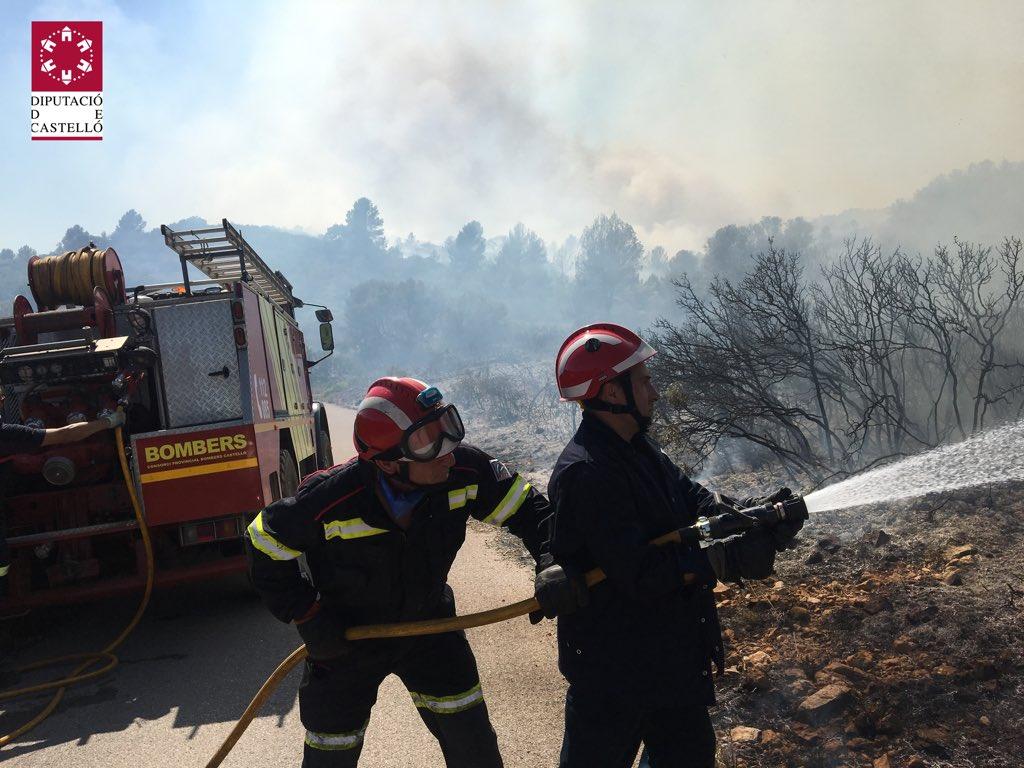 El Consorcio Provincial de Bomberos de Castellón trabaja desde este mediodía en un incendio que se ha producido entre los términos municipales de La Vall D´Alba y La Barona.