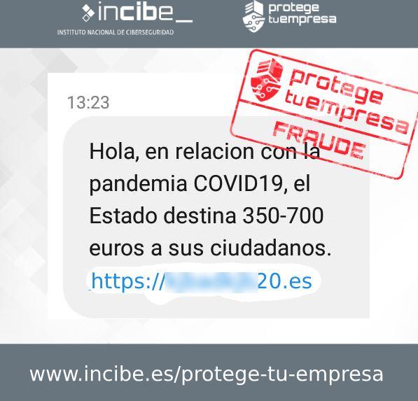 El Instituto Nacional de Ciberseguridad de España (Incibe) alerta de una campaña de fraude solicitando una supuesta ayuda económica. Se ha detectado una campaña fraudulenta por medio de mensajes SMS utilizando como gancho la situación actual de crisis sanitaria provocada por el Covid-19. Dicho SMS contiene un enlace que redirige al usuario a una página web fraudulenta cuyo propósito es robar información personal y bancaria.