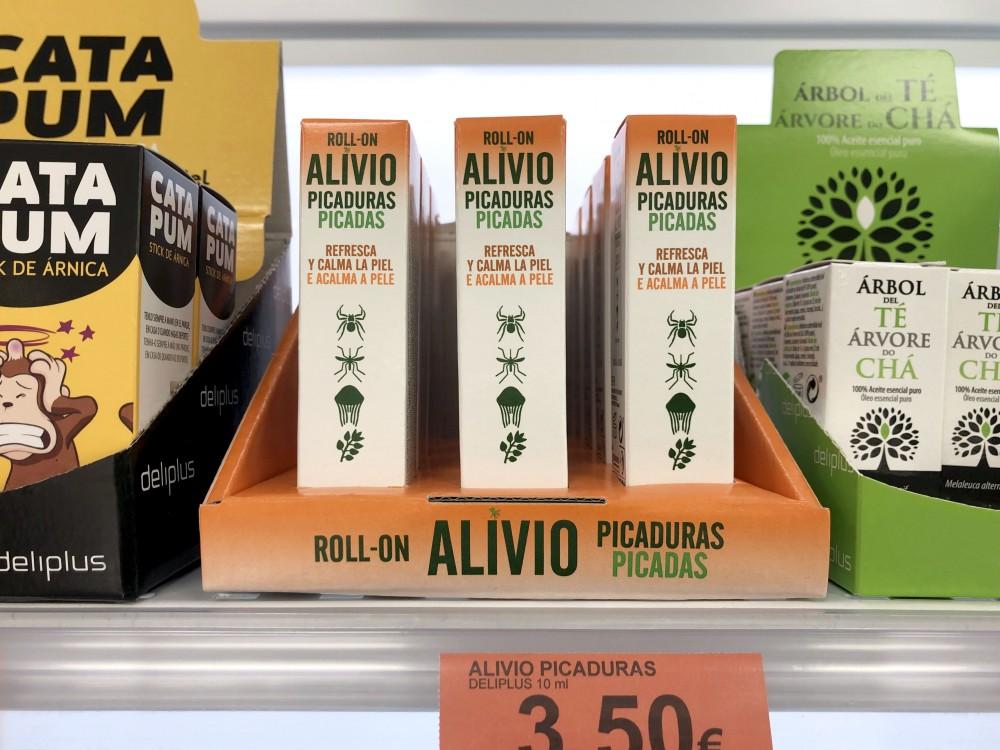 Por otro lado, el Alivio Picaduras en roll-on, elaborado por SPB en Cheste (Valencia) y disponible en toda la cadena, se utiliza para aliviar la piel tras la picadura de insectos -como mosquitos-, medusas y plantas urticantes. Este producto se caracteriza por contener mentol que aporta sensación de frescor, y porque sus componentes generan una película protectora sobre la piel irritada, dejando una sensación suave sobre la misma.