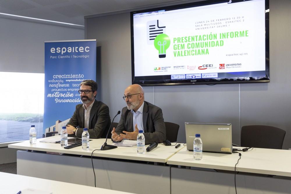 Respecte a l'informe GEM Comunitat Valenciana, les dades presentades per José María Gómez Gras i Ignacio Mira Solves, Director General i Director Tècnic de l'Informe respectivament,