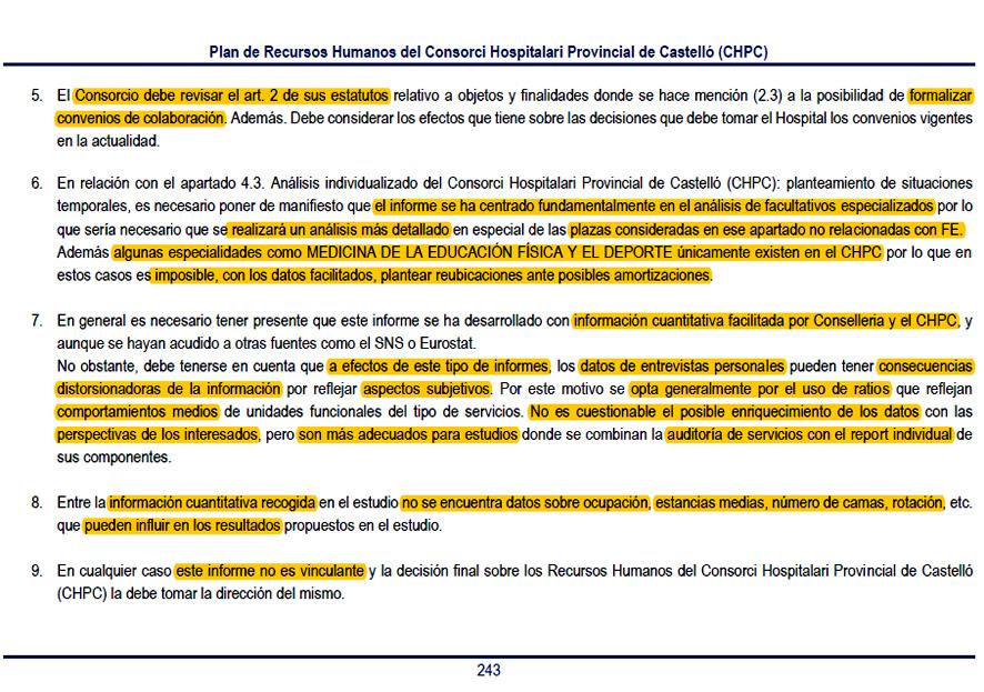 Tal como adelantó Castellón Información, los siete folios publicados inicialmente por la Conselleria, no eran sino recorte parcial dentro de un informe mucho más amplio, contratado por el Consorcio a la Universidad Jaume I.