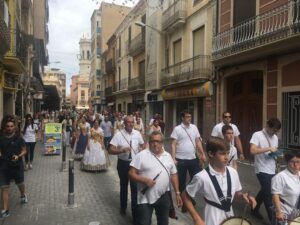 La jornada acabava de començar i uns minuts després, els gegants, el grup de tabal i dolçaina han encapçalat la marxa a través de l’avinguda la Murà cap al jardí de Jaume I, on ha tingut lloc l’obertura de la festa amb volteig de campanes i descàrrega de coets, que han sigut calats per la reina i les dames amb evident nerviosisme, a pesar d’estar tot controlat pels experts pirotècnics i haver-hi efectius de Protecció Civil i Policia Local. Finalment la traca ha explotat sense cap incident, en un dels moments més espectaculars de la jornada.