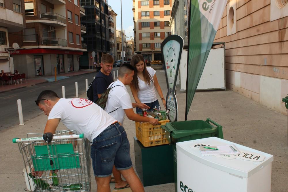 Ecovidrio ha situat en plena Plaça de la Mercè la gran bàscula que pesarà el material que cadascuna de les penyes que s'animen a participar en la iniciativa, acosten fins al punt de recollida. Després de pesar els quilos i quilos de vidre que les penyes han començat a traslladar fins a la Mercè, l'encarregada de la campanya anota el la quantitat per a, una vegada finalitzen els festejos patronals, calcular quin ha sigut la penya que més vidre ha arreplegat i premiar-la. Així, avui ha sigut la primera de les sessions de recollida a través de la gran bàscula, i es repetiran tant dimecres que ve dia 5 com el divendres dia 7, per a així, una vegada tancats els festejos, celebrar el lliurament dels premis a la penya que més recicle.